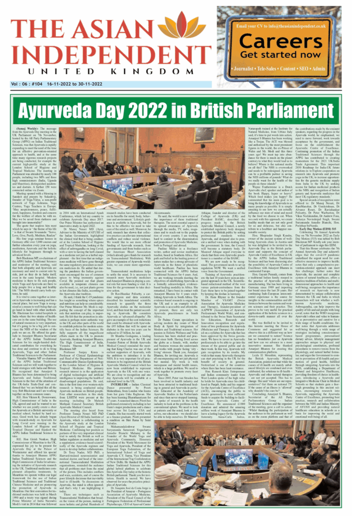 Ayurveda Day 2022 in British Parliament